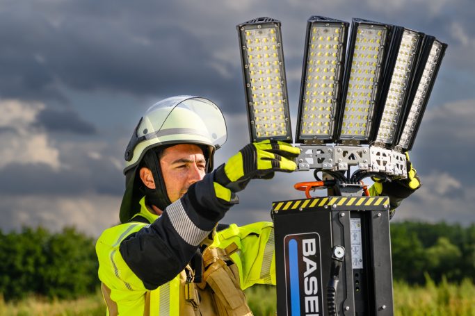 Bei dem BASELIGHT 320X sorgen 6 Hochleistung-LED-Leuchtkörper für ausreichend Licht an der Einsatzstelle und dort wo es im Notfall benötigt wird. 45000 Lumen sorgen für eine Flächenausleuchtung von ca.4600m². Es besteht die Möglichkeit die LED- Leuchtkörper manuell auf 360° Rundum oder 180° Flutlichtausleuchtung einzustellen sowie lässt sich der Kipp-und Neigungswinkel der LED-Leuchtkörper verstellen. Alle BASLIGHT Lichtmasten bieten zudem die Möglichkeit die Lichtleistung nach Bedarf zu dimmen.