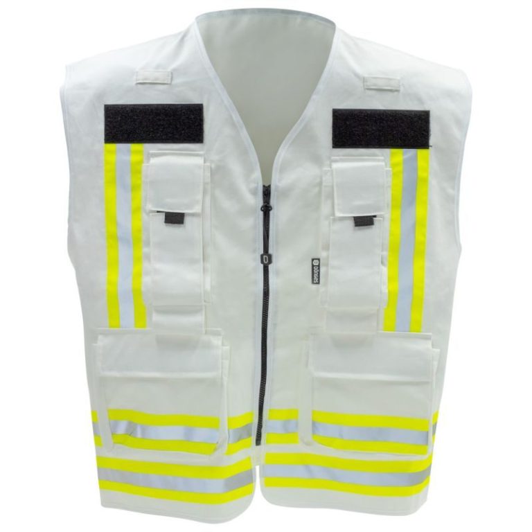 Dönges Kennzeichnungsweste weiss für Feuerwehr und Rettungsdienst. Durchdacht ausgestattet für klare Kennzeichnung der Funktionen im Feuerwehr- und Rettungsdienst-Einsatz.