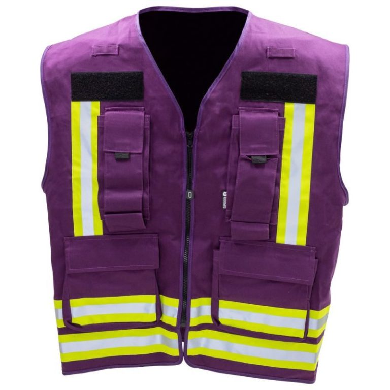 Dönges Kennzeichnungsweste Lila für Feuerwehr und Rettungsdienst. Durchdacht ausgestattet für klare Kennzeichnung der Funktionen im Feuerwehr- und Rettungsdienst-Einsatz.